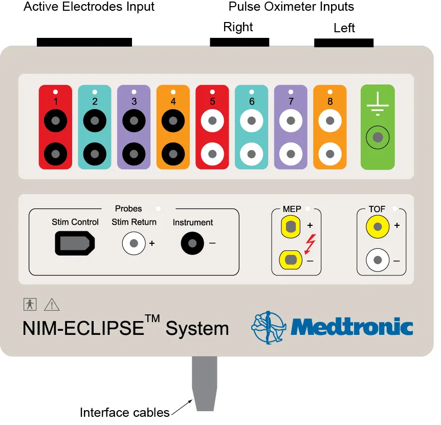 NIM-Eclipse SD es un sistema de neuromonitoreo de 8 canales destinado a todo tipo de cirugías de columna. Este sistema permite al cirujano iniciar, controlar y realizar estudios neurofisiológicos directamente desde la zona estéril.